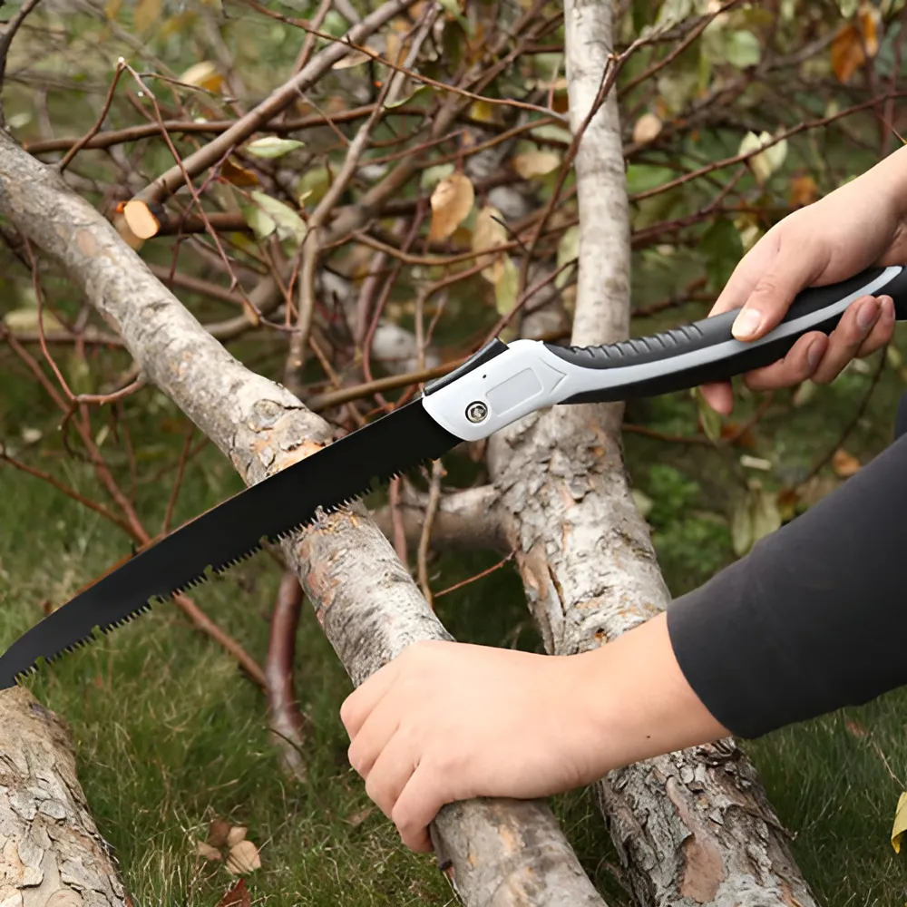 Com esta serra de mão dobrável , você realiza cortes limpos e rápidos em galhos, troncos e peças de madeira — com o máximo de precisão, conforto e mobilidade.