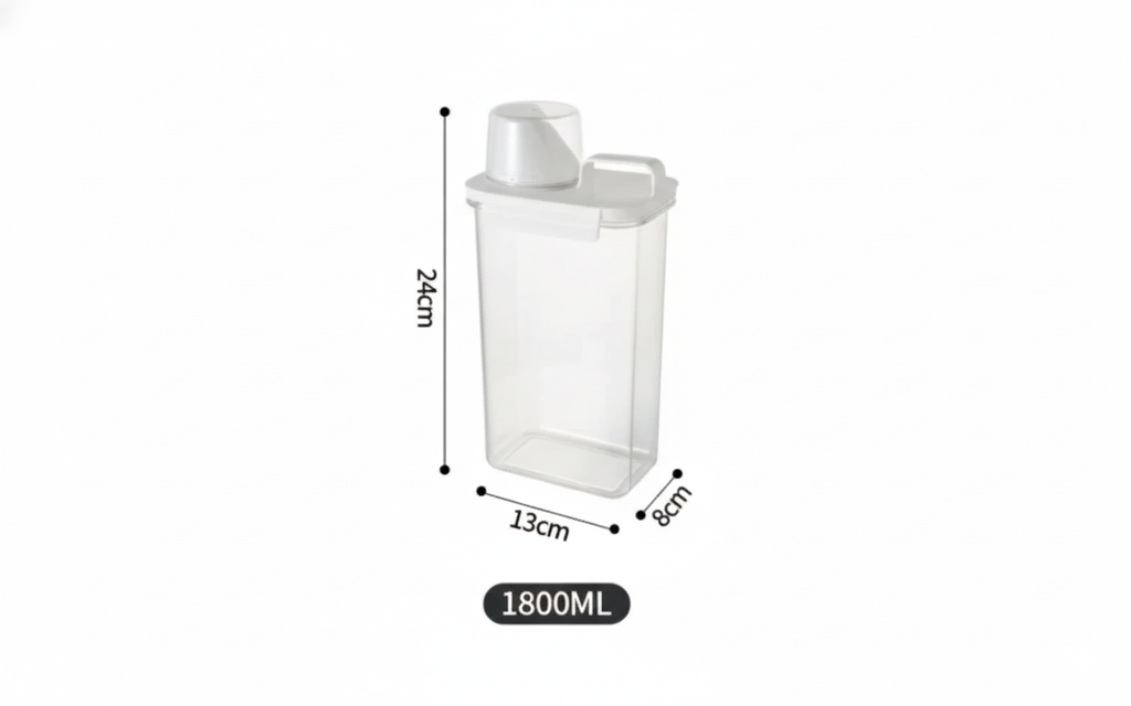 Com o Dispensador Multiuso 1800ml, você armazena tudo com praticidade, evita sujeira, mantém tudo seco e ainda controla exatamente quanto usa — tudo isso no mesmo recipiente.